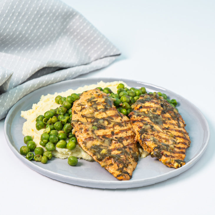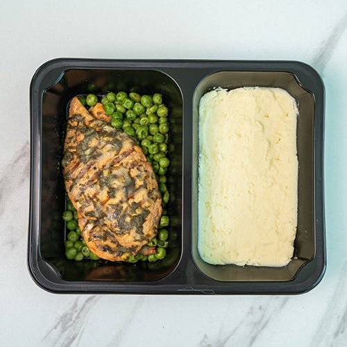Chicken, Peas, Potato, Cream (Plain, Pasteurized), Butter, Garlic, Salt, Parsley, Lemon Juice, Olive Oil, Mustard, Wheat Flour, Coriander, Black Pepper, Vegetable Stock (Corn Starch Milk, Barley, Celery), Paprika, Nutmeg and White Pepper.