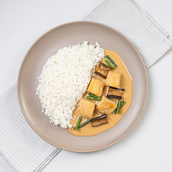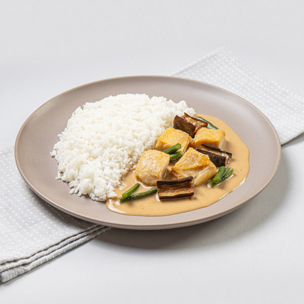 Tender chicken in a coconut milk sauce with eggplant and long beans—served over fragrant jasmine rice. Creamy, bold, and unmistakably Filipino.