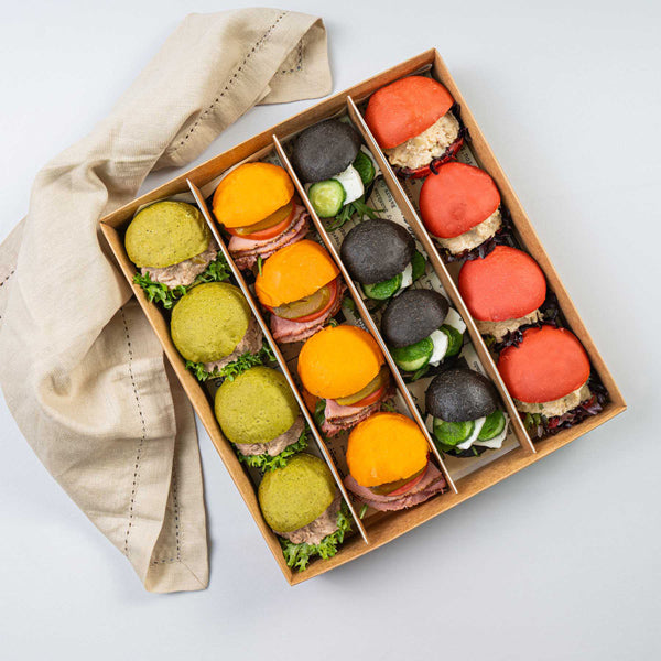 Black Brioche Roll, Grilled Halloumi, Cucumber, Mint Leaves, Rocca Leave, Black Olive, Garlic and Olive Oil.
