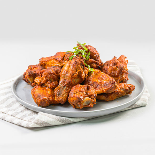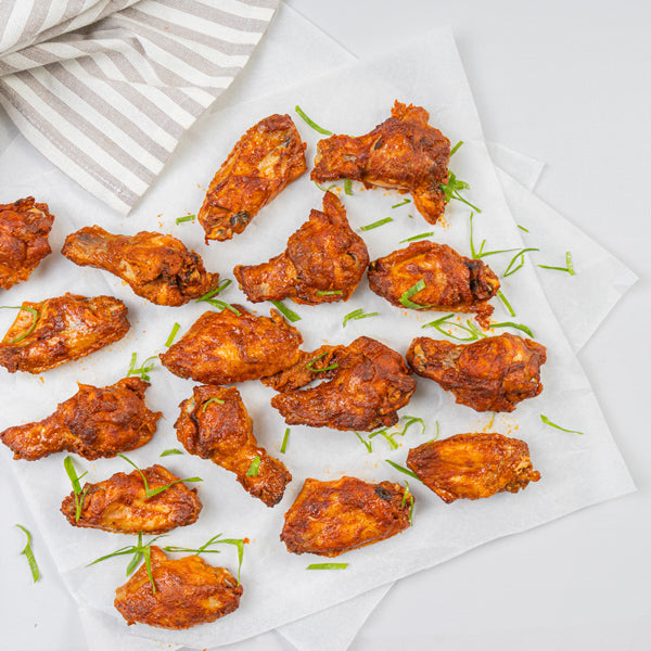 Oven: Preheat your oven to 170ºC. Remove the frozen chicken from the package. Place chicken wings in a single layer on a baking sheet. Use aluminum foil to line the sheet as well as cooking spray to prevent the wings from sticking. Place the baking sheet on the center rack of the oven. Bake for 7 to 8 minutes. Flip chicken over and bake for an additional 6 to 7 minutes. Allow wings to stand for 1-2 minutes.