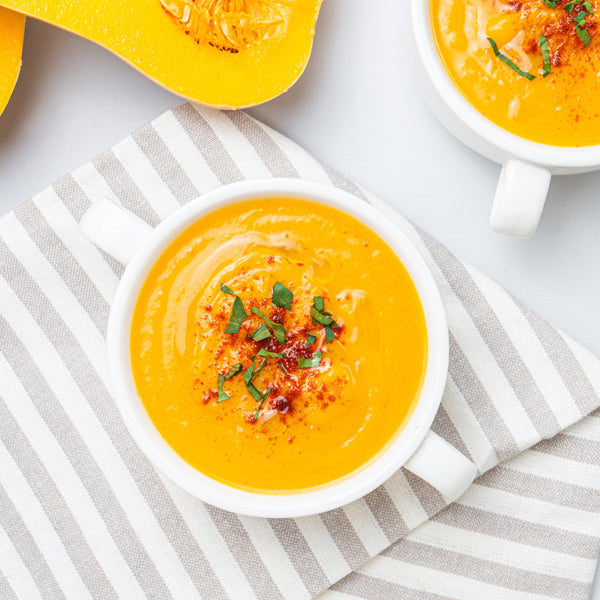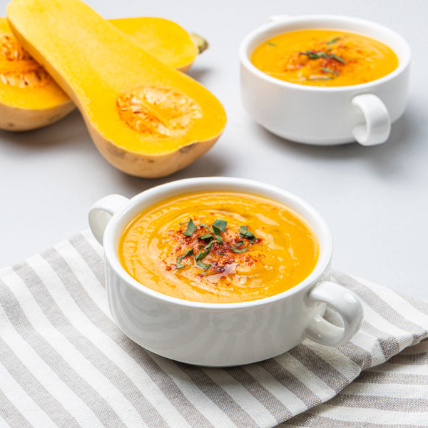 Let’s cozy up with a bowl of warm, creamy butternut squash soup. This butternut squash combined with leek, cream and seasonings makes for a deeply flavorful and hearty soup. Creamy and delicious, this vibrant soup is packed with nutrition and makes for a satisfying meal.
