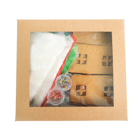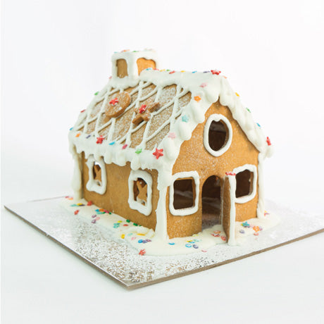 A fun festive kit with ready-made gingerbread pieces, icing, and candies, perfect for decorating and building your own Christmas house.