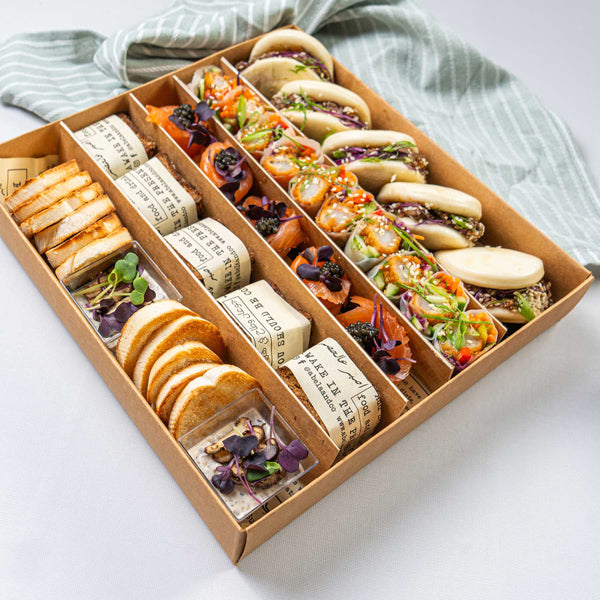 Salmon, Tartlets (Flour [Wheat, Rye, Spelt], Palm Fat Non-hydrogenated, Wheat Starch, Sugar, Salt, Soy Flour, Barley Malt) Cream Cheese, Caviar, Chives and Dill